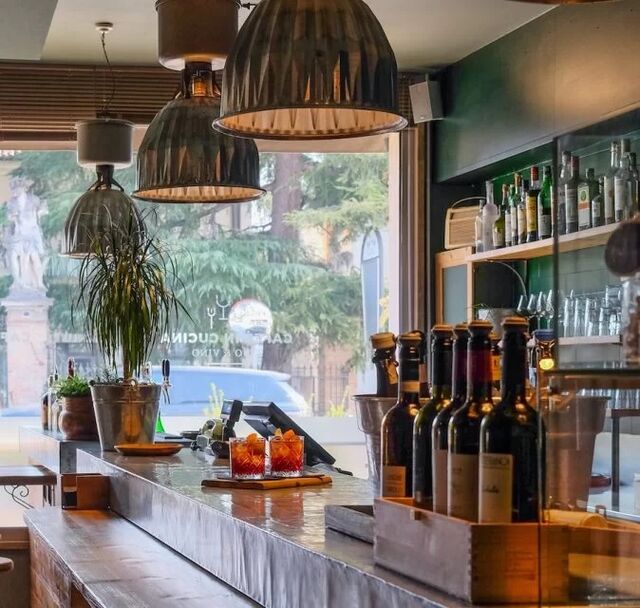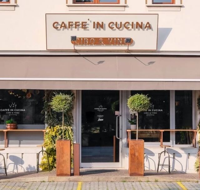 Caffè in Cucina è anche enoteca ed offre una selezione di circa 200 etichette con predilezione per le bollicine naturali del territorio, come il Prosecco col fondo, oltre che di vini naturali e champagne francesi, acquistabili, quindi, anche da asporto.